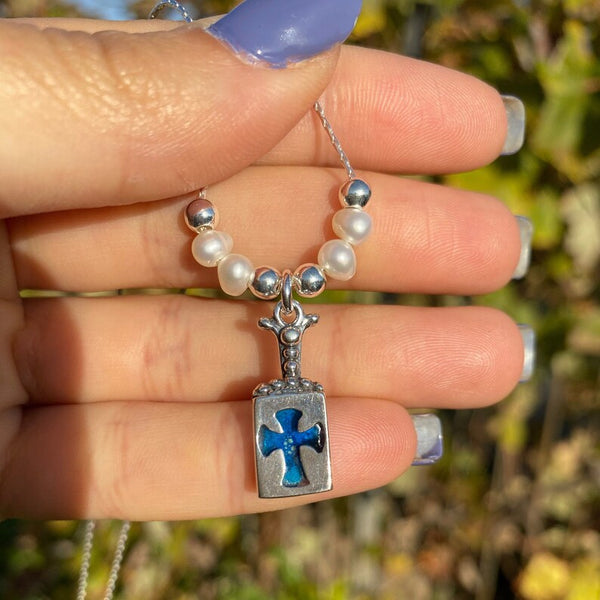 På udsalgKorshalskæde med kors fra middelalderen og hvide ferskvandsperler