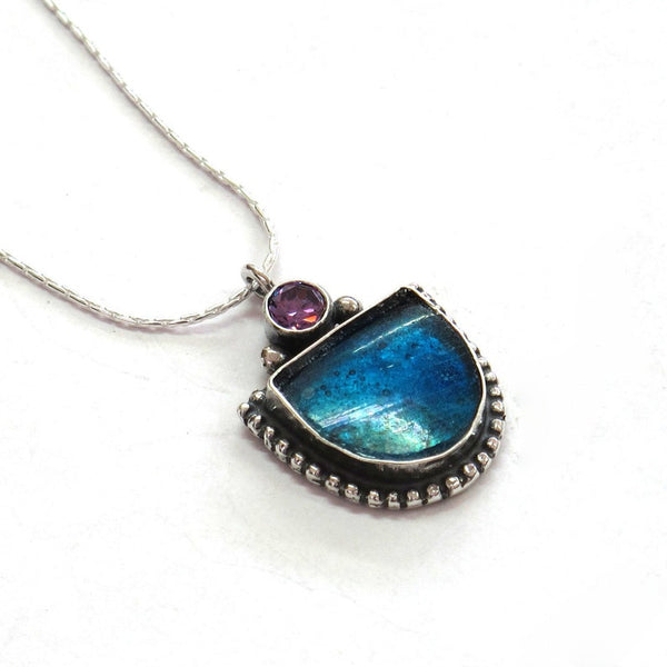 På udsalgHalskæde som "skjold" med lilla Ametyst smykkesten